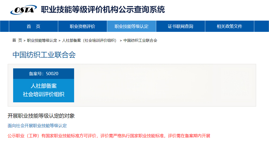 纺织工业联合会职业能力评价